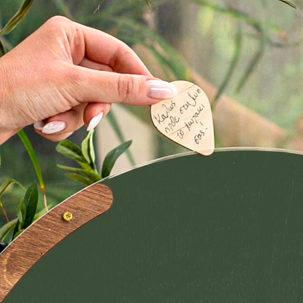Κρατήστε τις ευχές των αγαπημένων σας με τον πιο πρωτότυπο τρόπο. Η ξύλινη κατασκευή λειτουργεί όπως ένας <<κουμπαράς>>. Προσωποποιήστε το ευχολόγιο βάπτισης με το όνομα του παιδιού και την ημερομηνία του μυστηρίου.