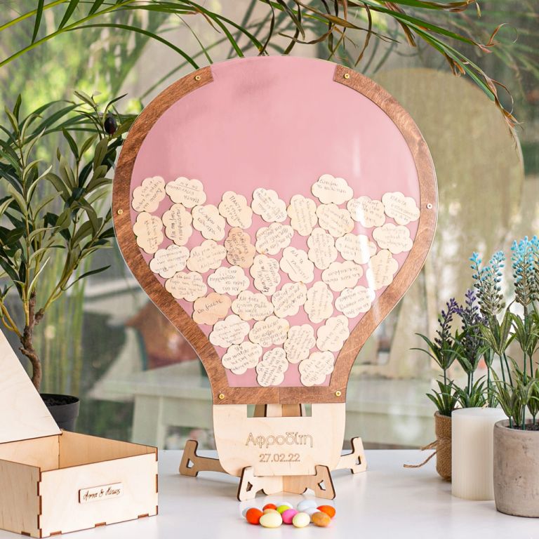 Premium Ξύλινο Ευχολόγιο, Pretty Balloon, Προσωποποιημένο