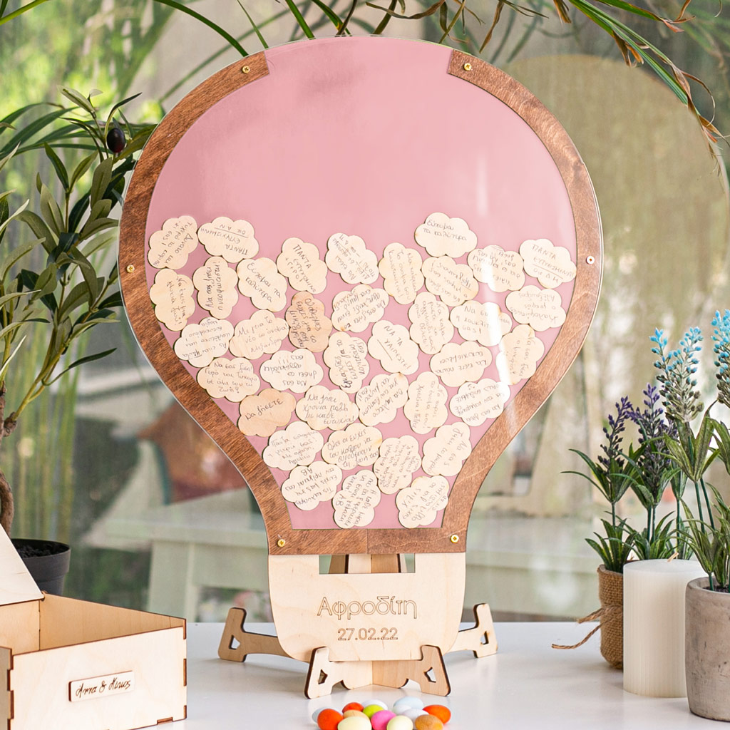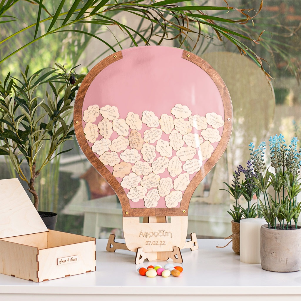 Premium Ξύλινο Ευχολόγιο, Pretty Balloon, Προσωποποιημένο