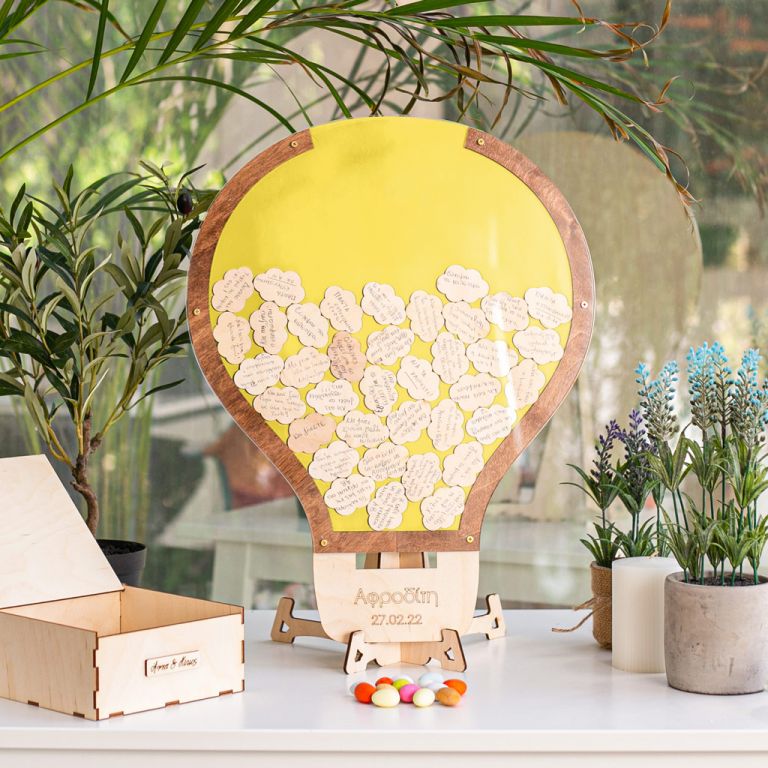 Premium Ξύλινο Ευχολόγιο, Yellow Balloon, Προσωποποιημένο