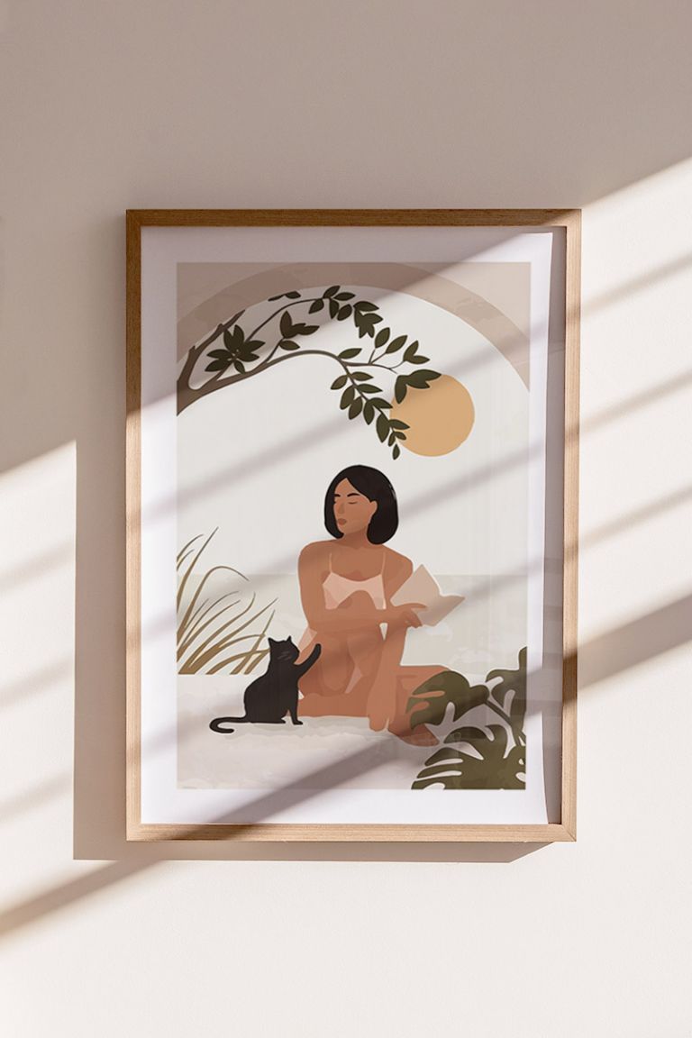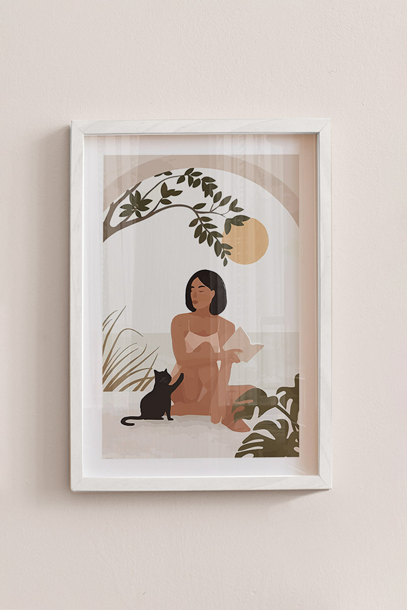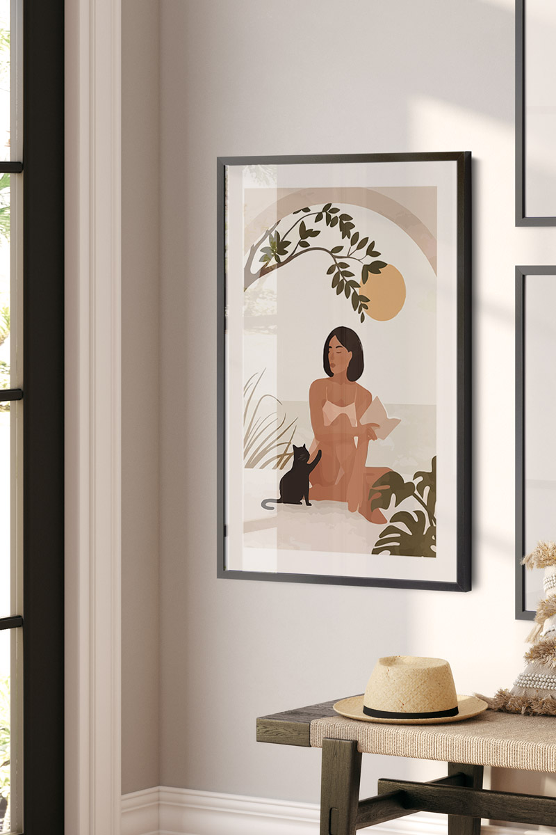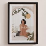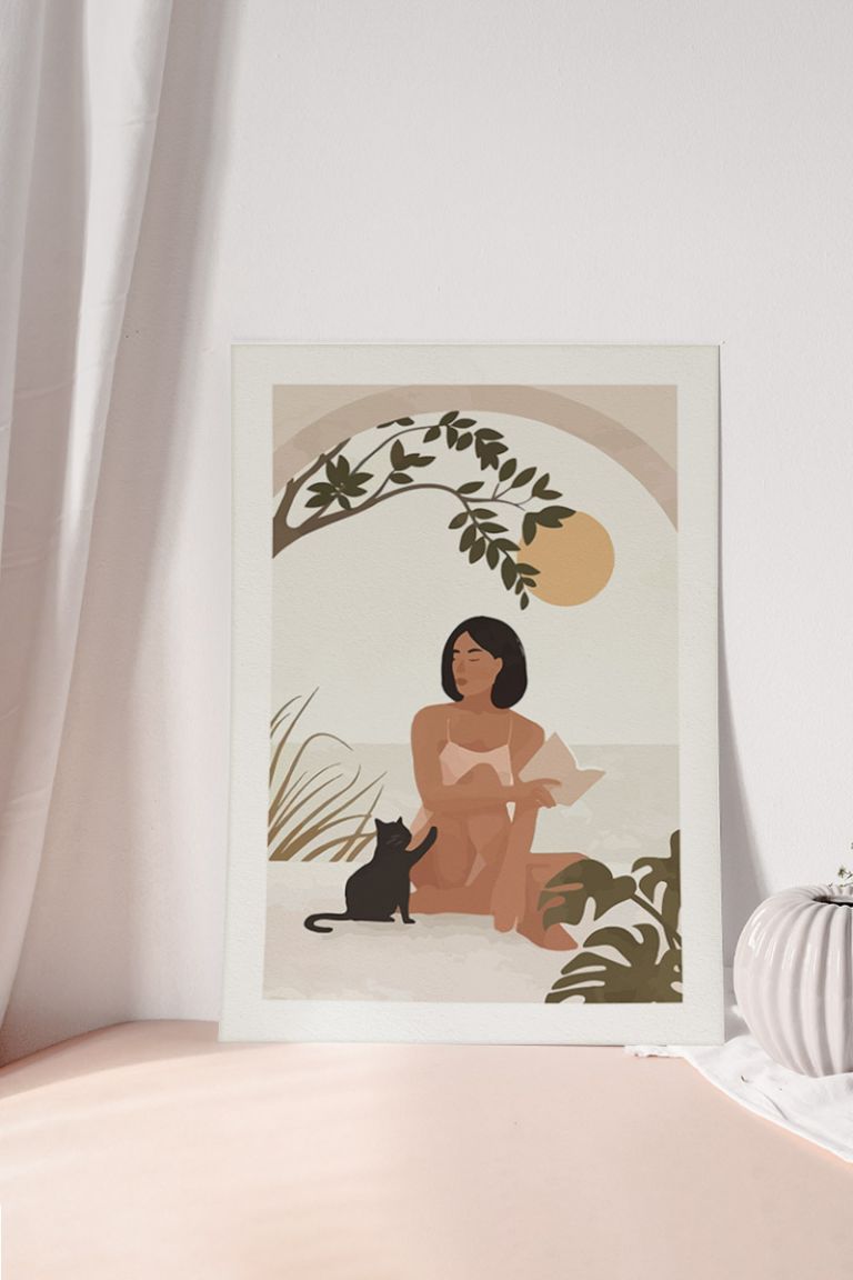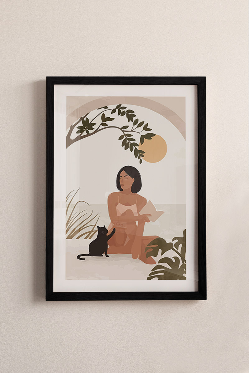 Woman With Her Cat Premium Poster