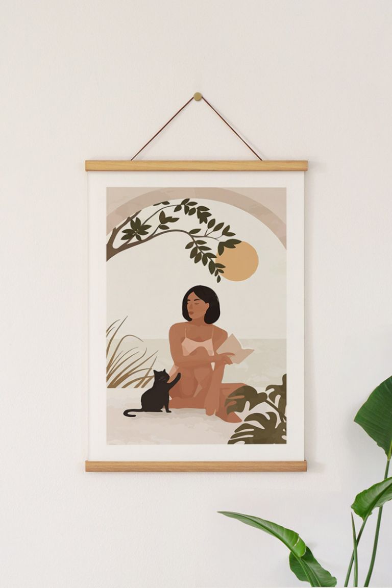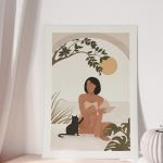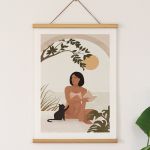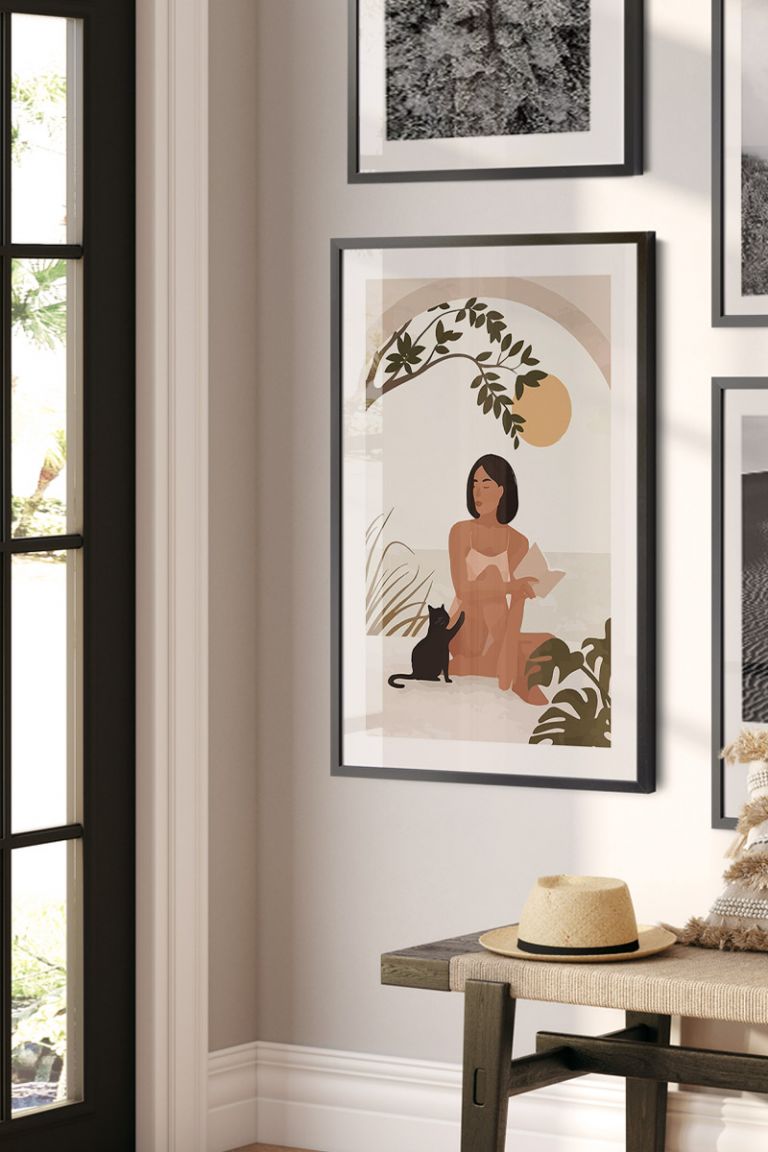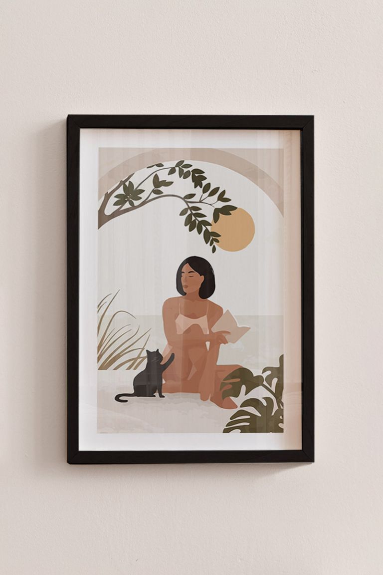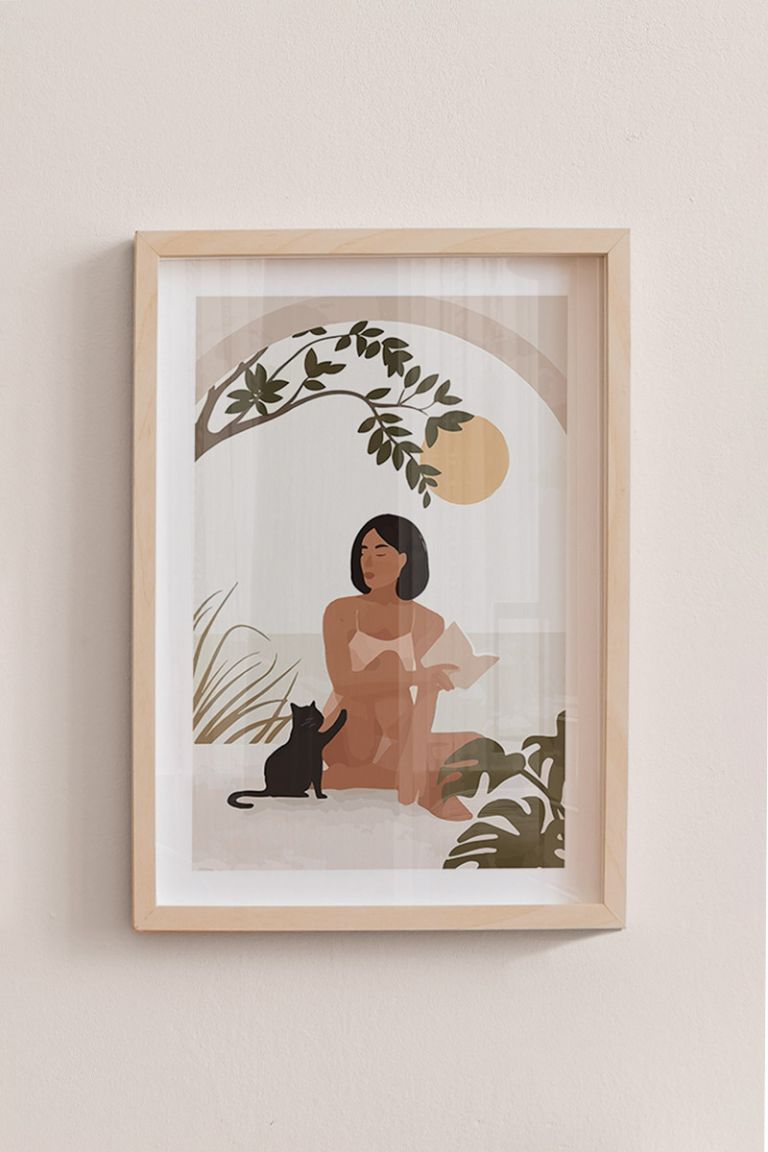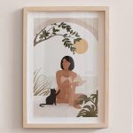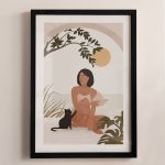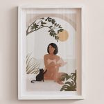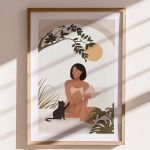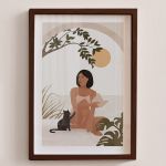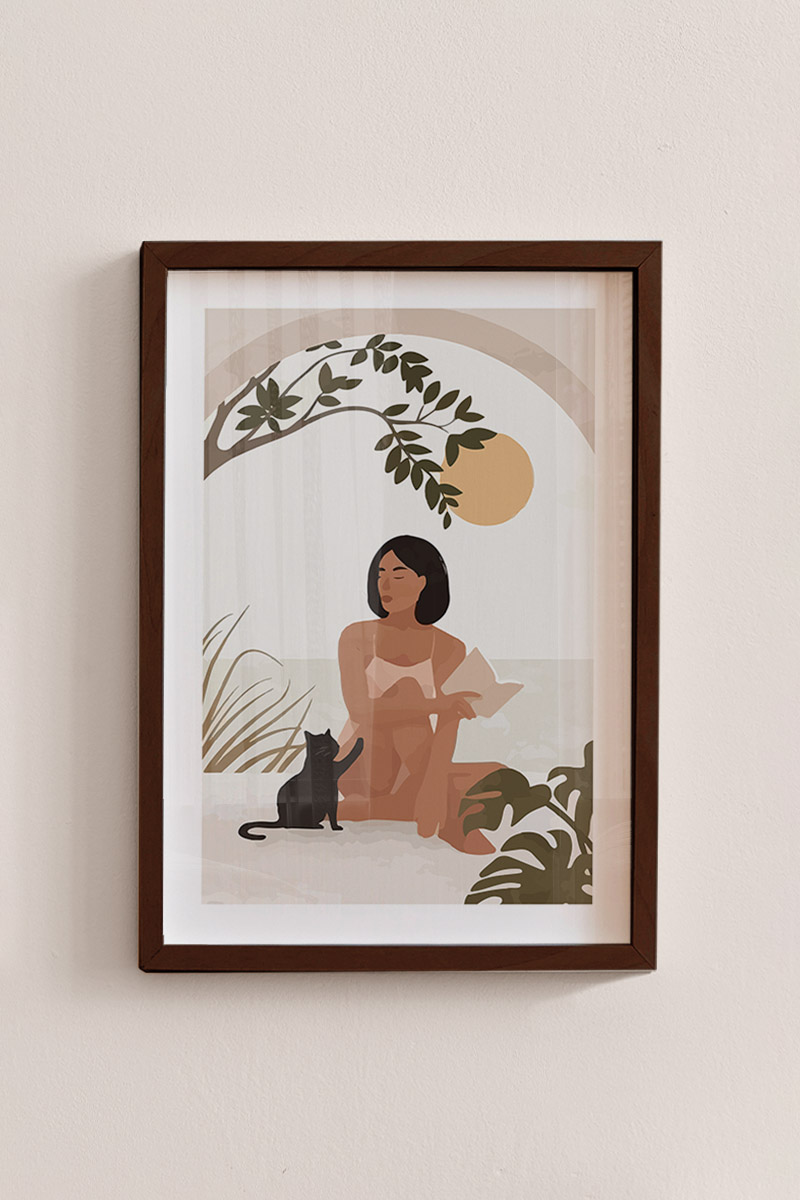 Woman With Her Cat Premium Poster