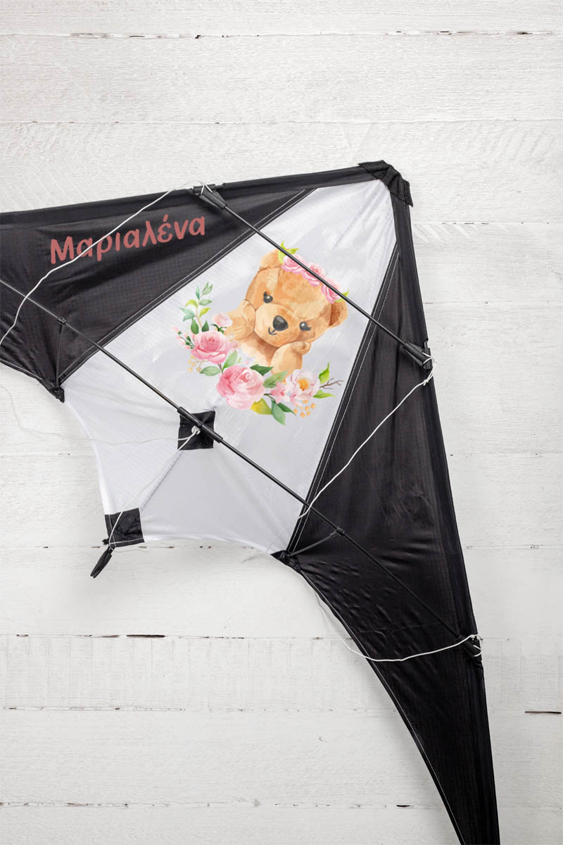 Μεγάλος Χαρταετός Προσωποποιημένος Ακροβατικός Υφασμάτινος με Σπάγο Και Θήκη Μεταφοράς, 160×75εκ, Bear Flowers