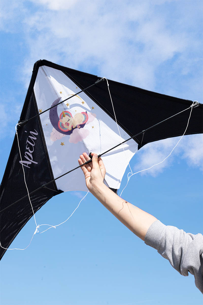 Μεγάλος Χαρταετός Προσωποποιημένος Ακροβατικός Υφασμάτινος με Σπάγο Και Θήκη Μεταφοράς, 160×75εκ, Moon Unicorn