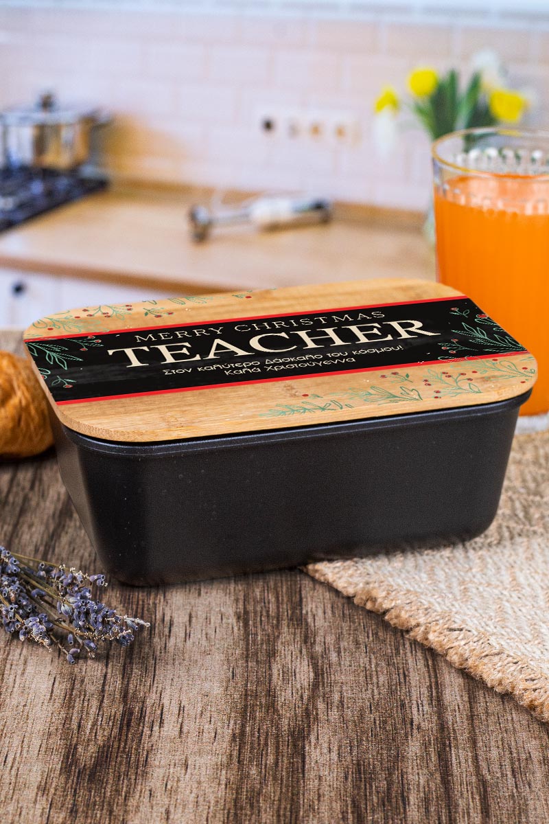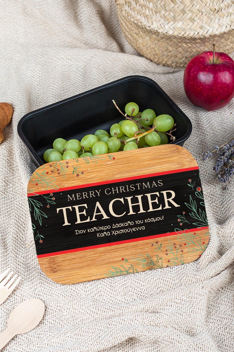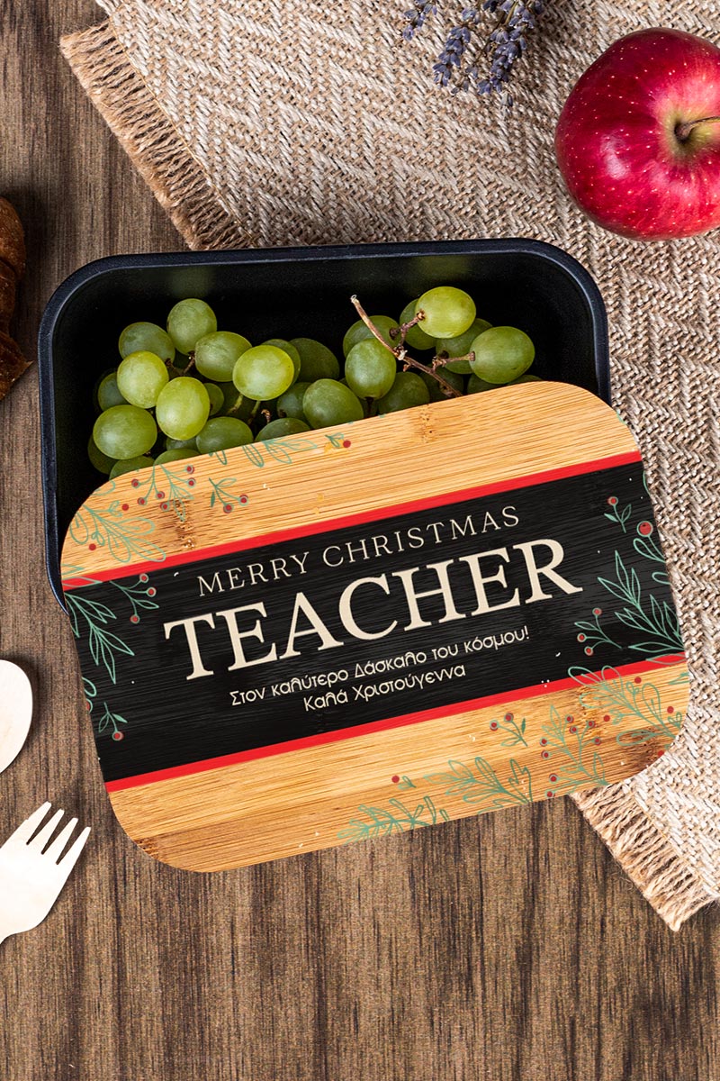 Χριστουγεννιάτικο Δοχείο Φαγητού με Όνομα, Δώρο για Δάσκαλο