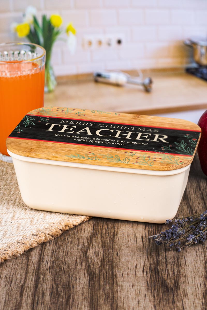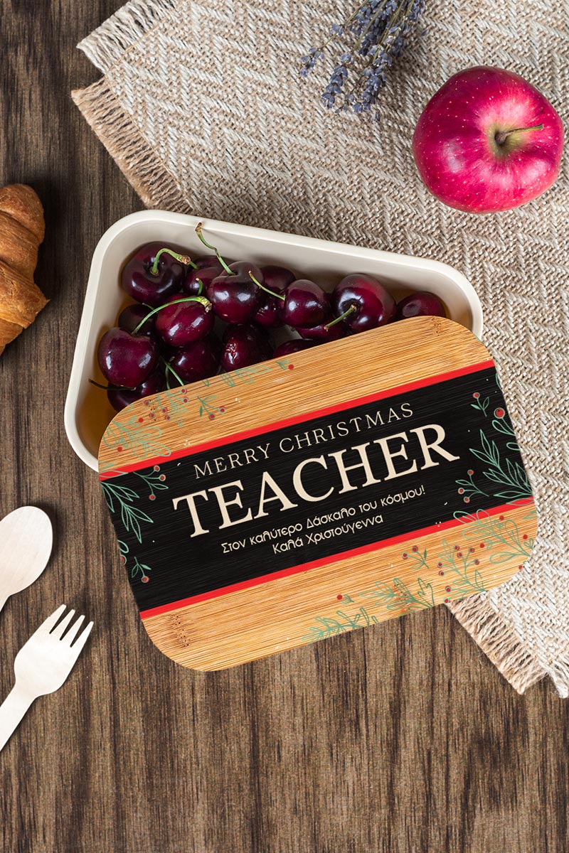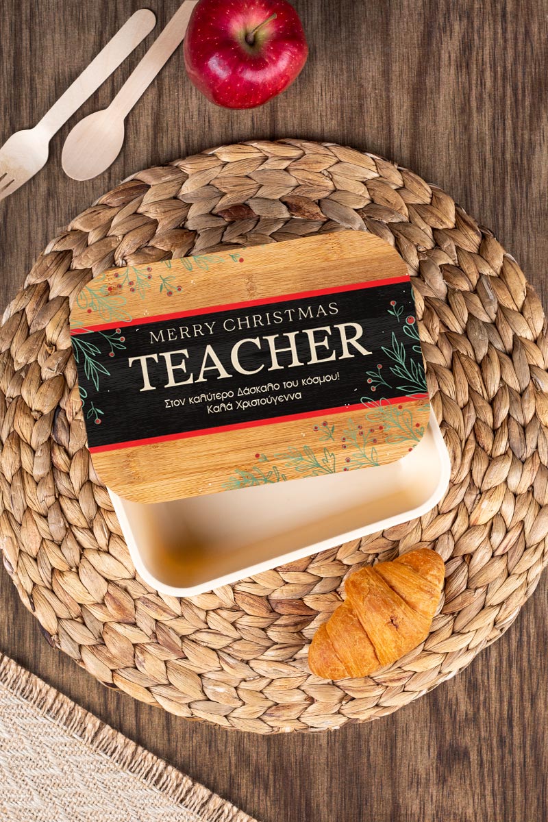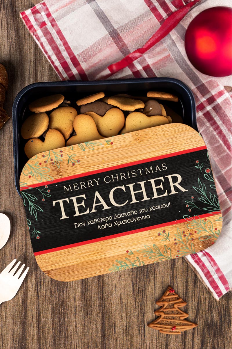 Χριστουγεννιάτικο Δοχείο Φαγητού με Όνομα, Δώρο για Δάσκαλο
