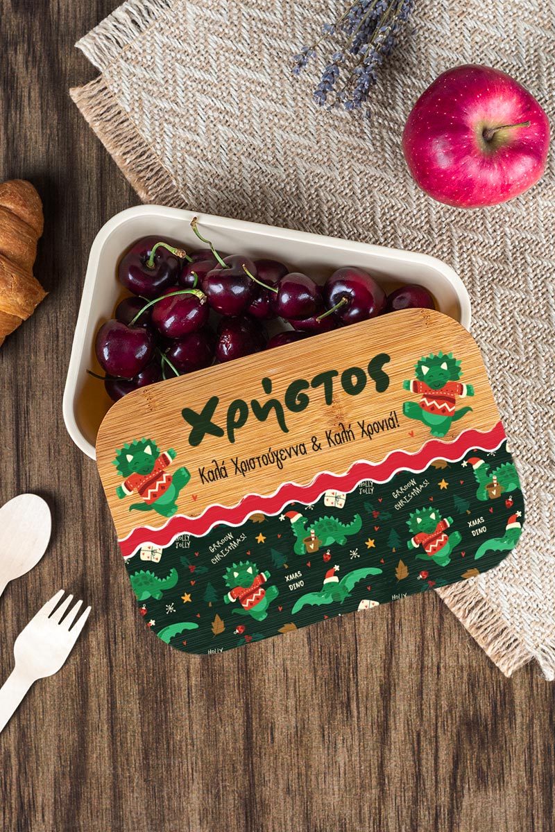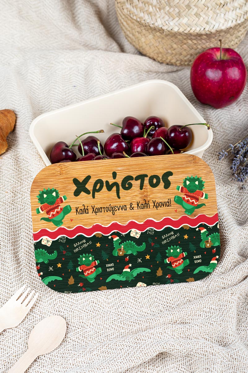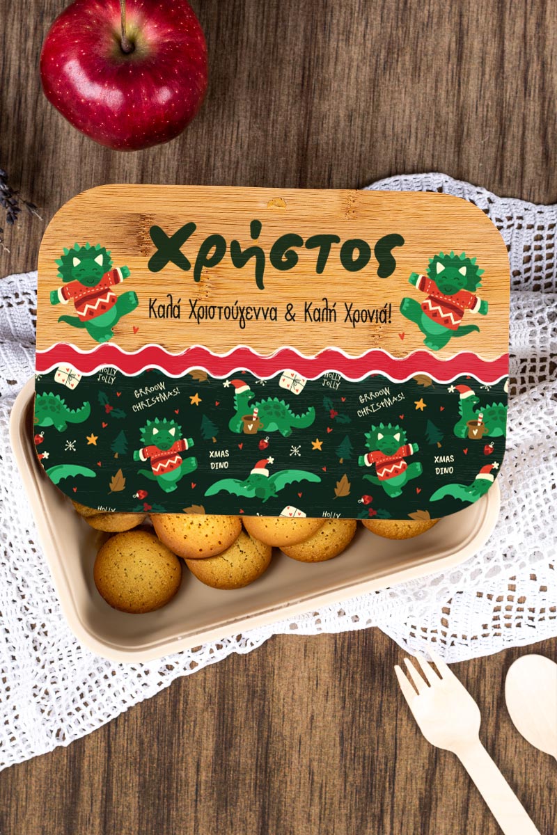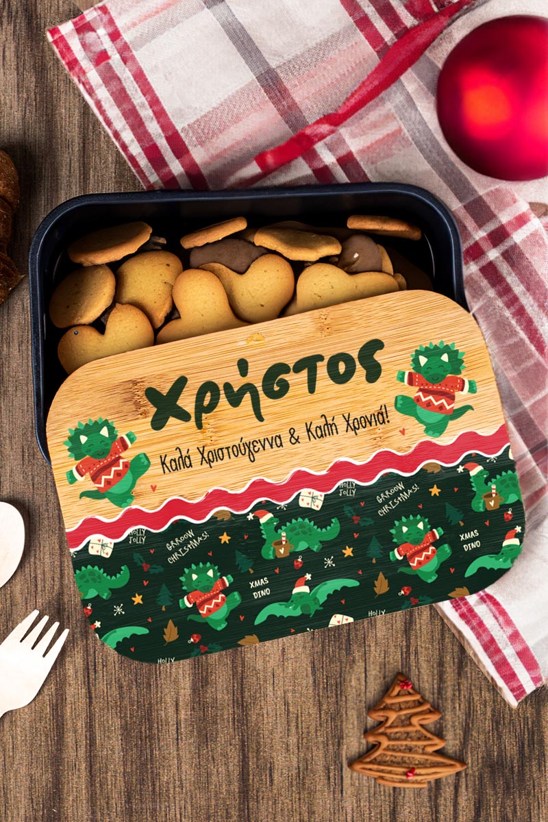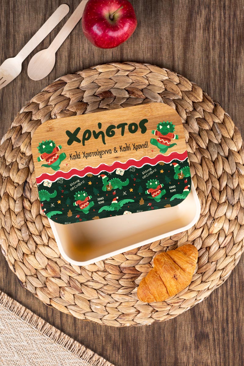 Χριστουγεννιάτικο Δοχείο Φαγητού με Όνομα, Xmas Dino