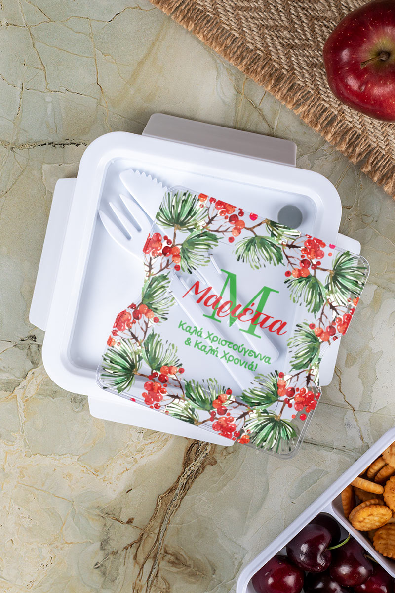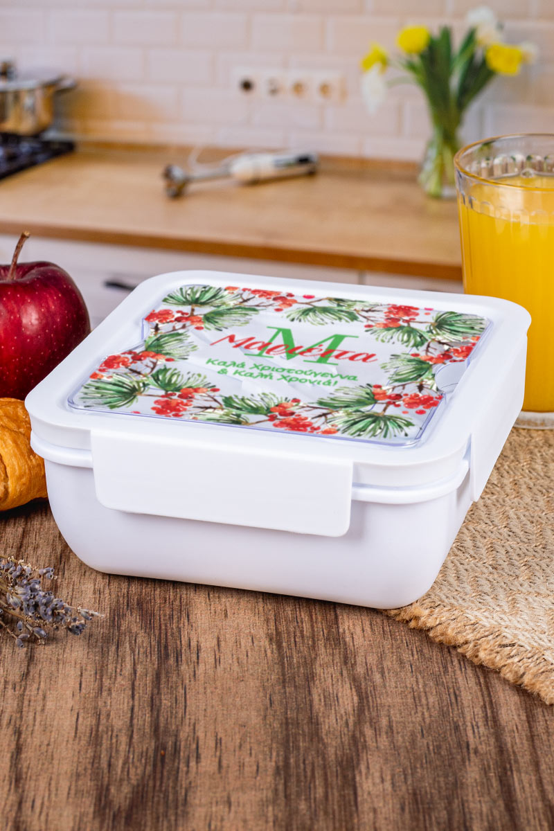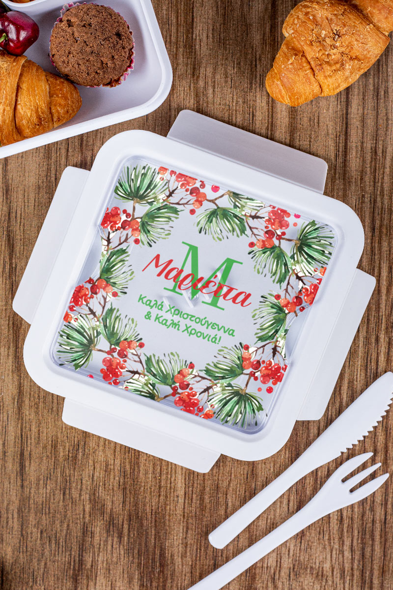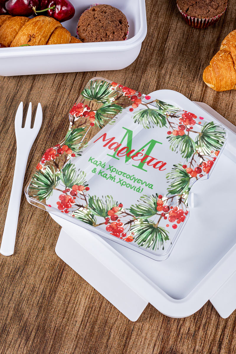 Χριστουγεννιάτικο Δοχείο Φαγητού με Όνομα, Red Mistletoe