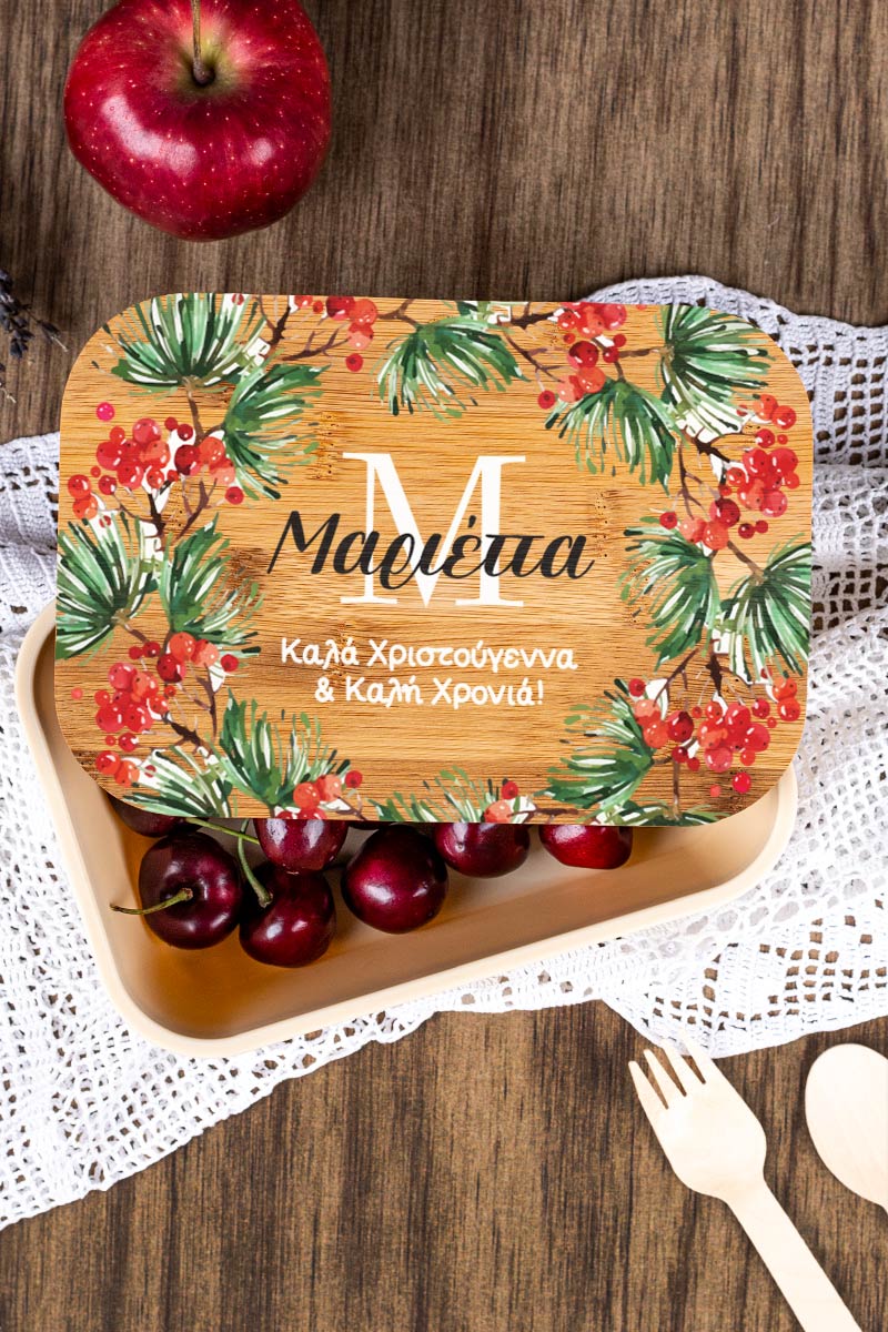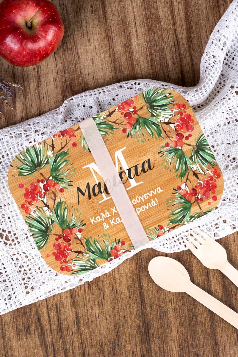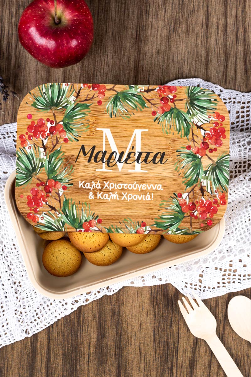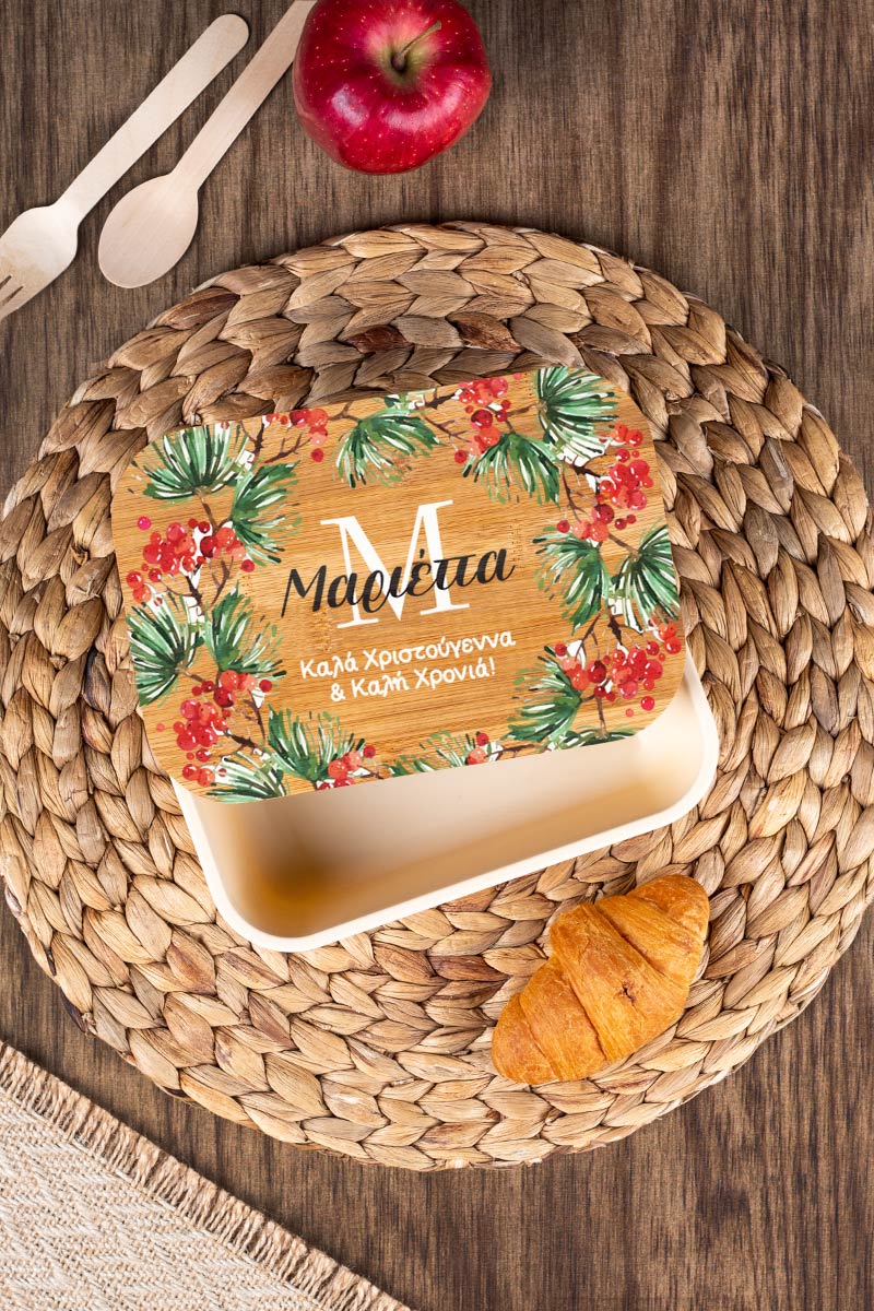 Χριστουγεννιάτικο Δοχείο Φαγητού με Όνομα, Red Wreath