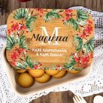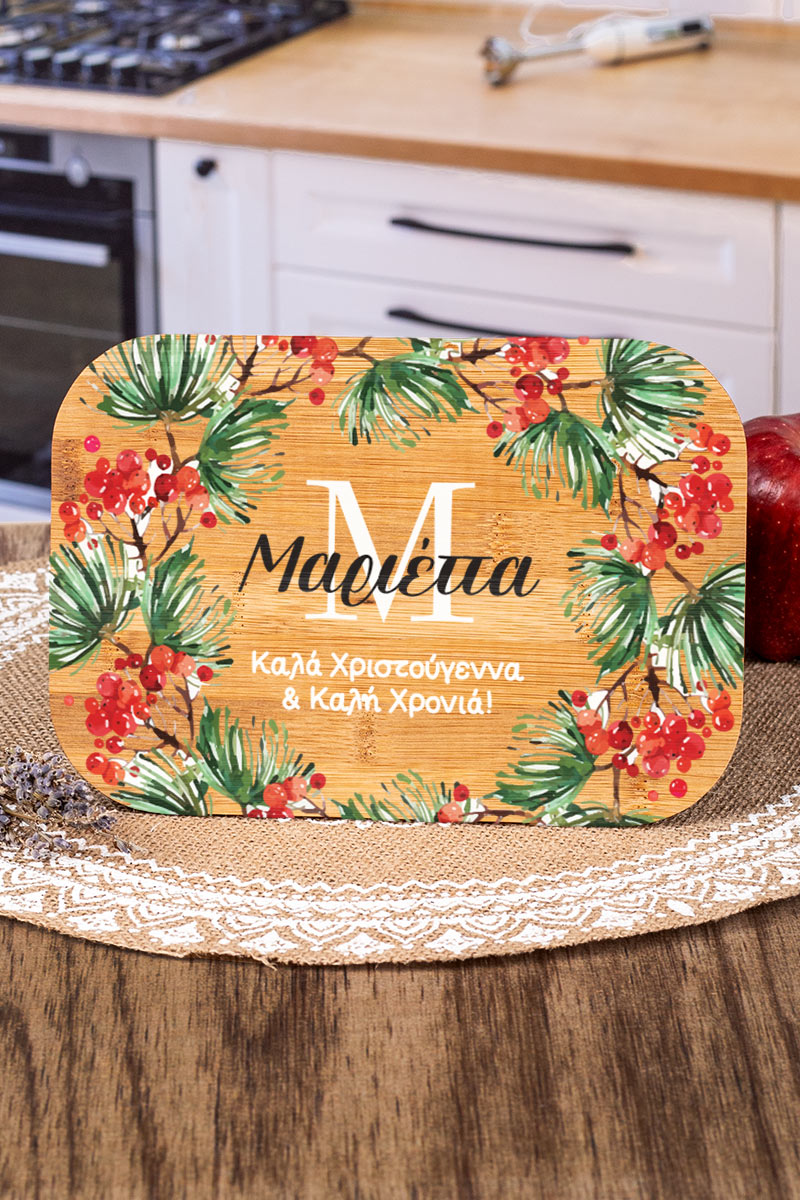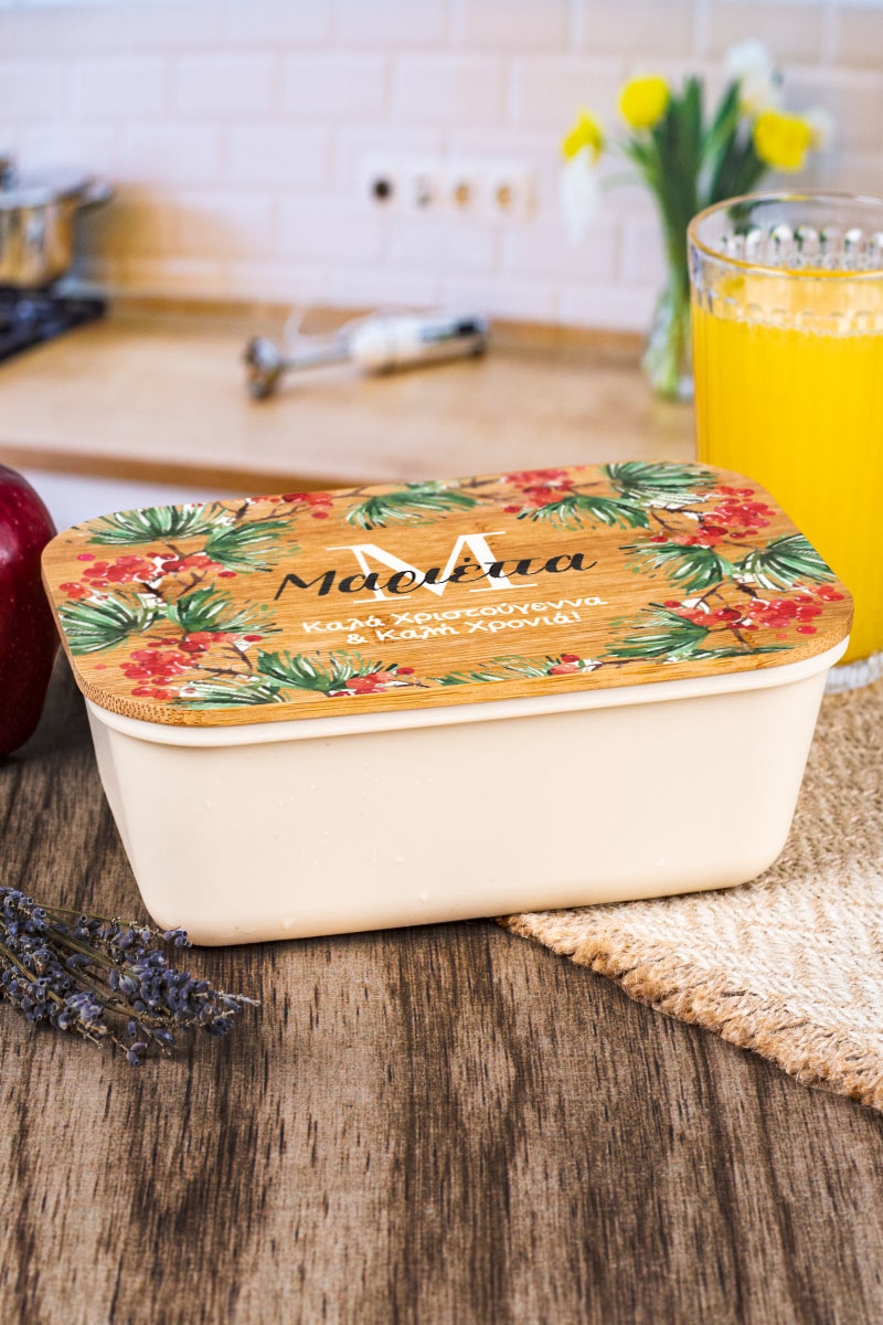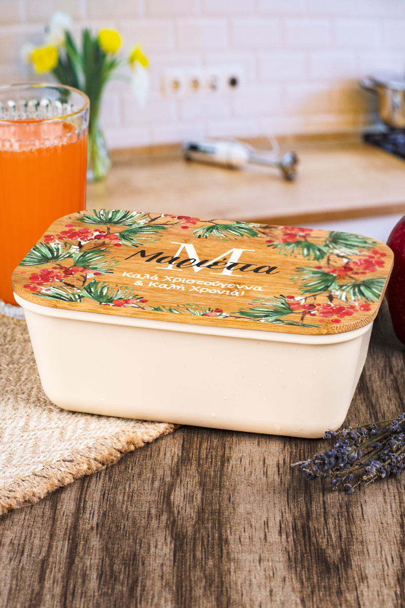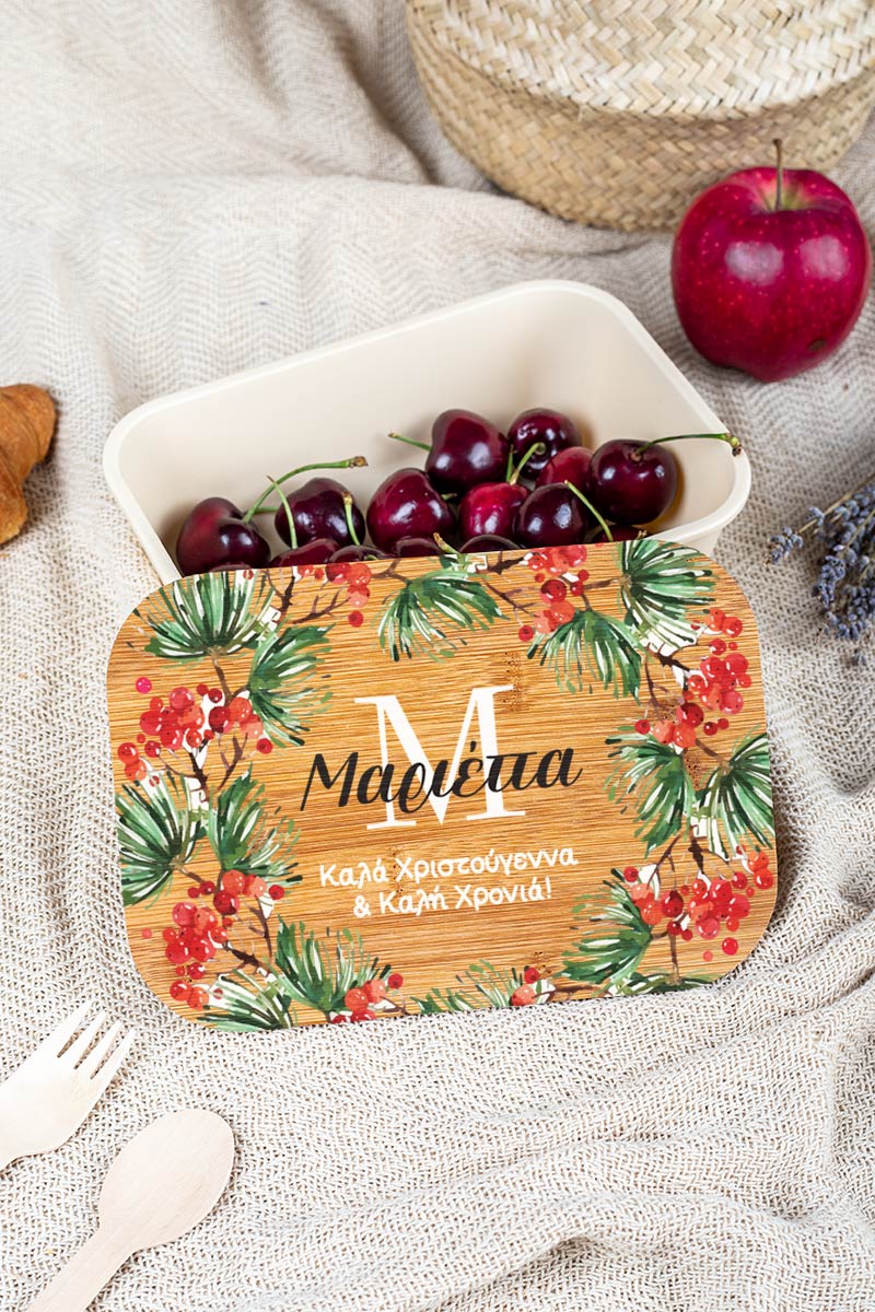 Χριστουγεννιάτικο Δοχείο Φαγητού με Όνομα, Red Wreath