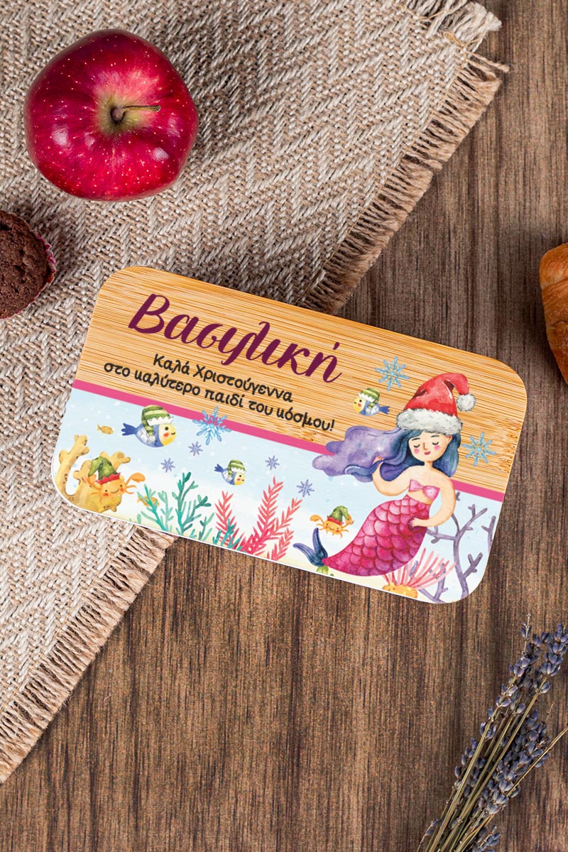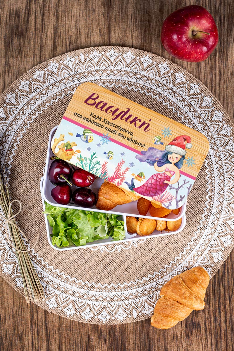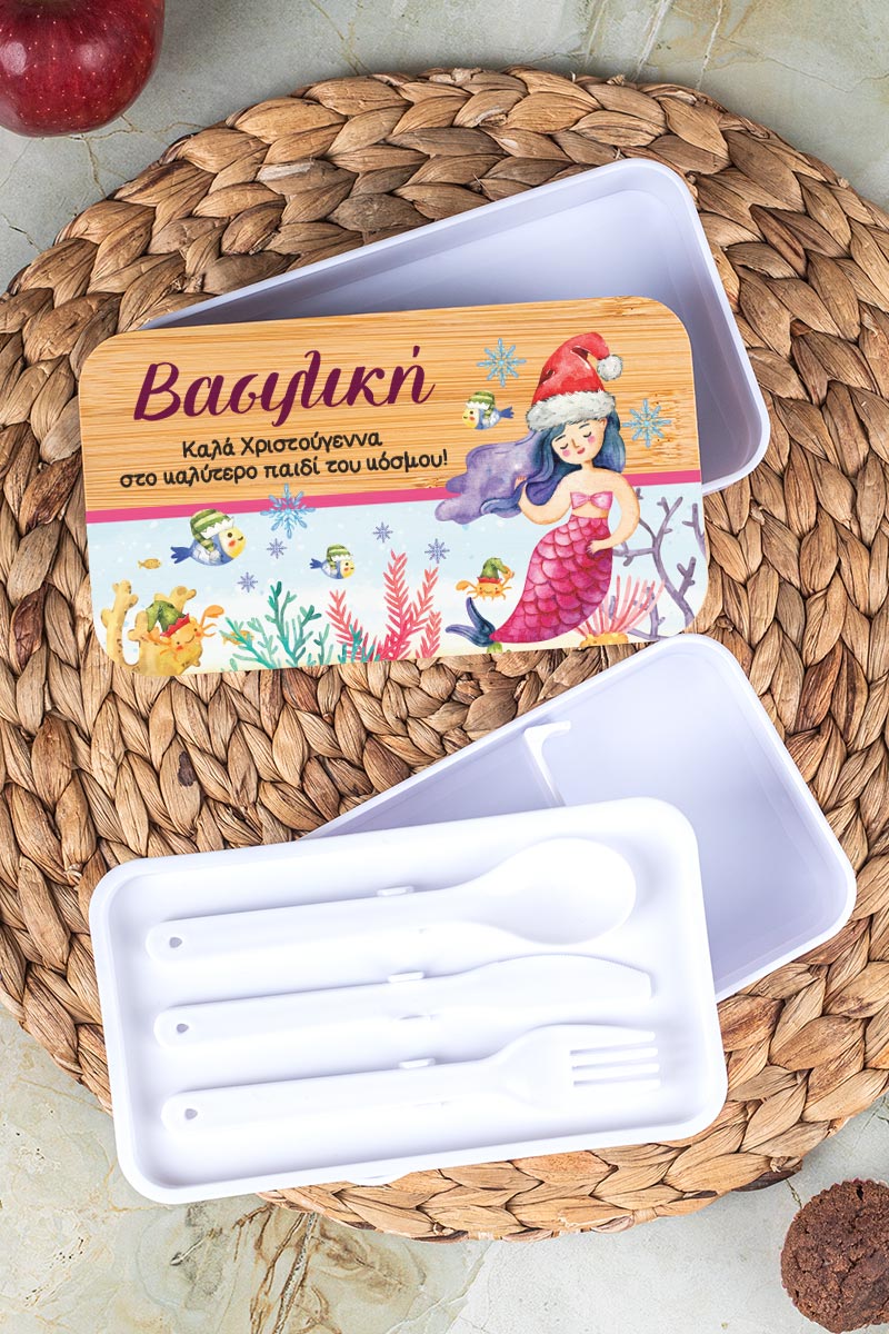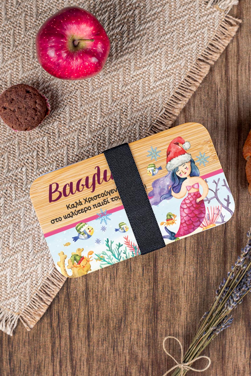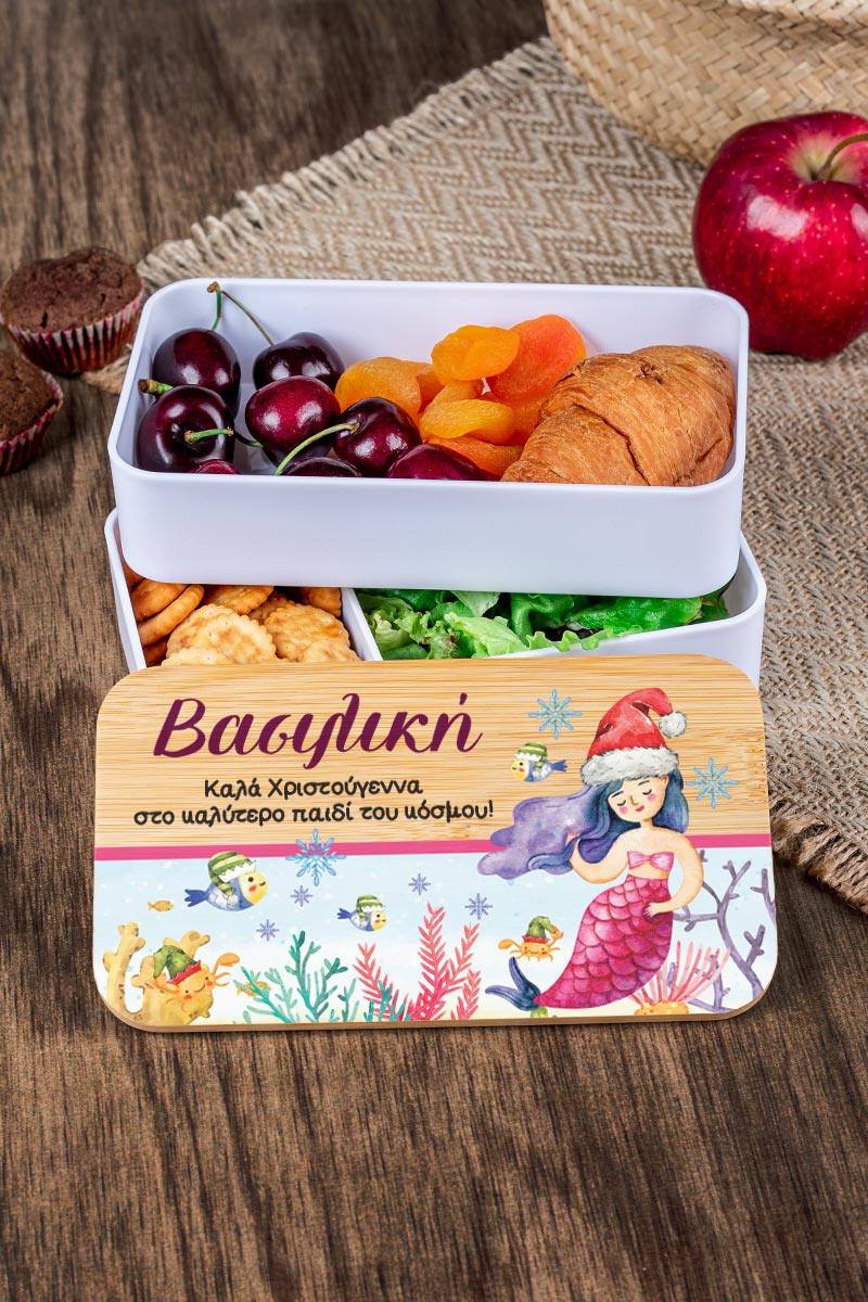 Χριστουγεννιάτικο Δοχείο Φαγητού 2 Επιπέδων με Όνομα, Xmas Mermaid