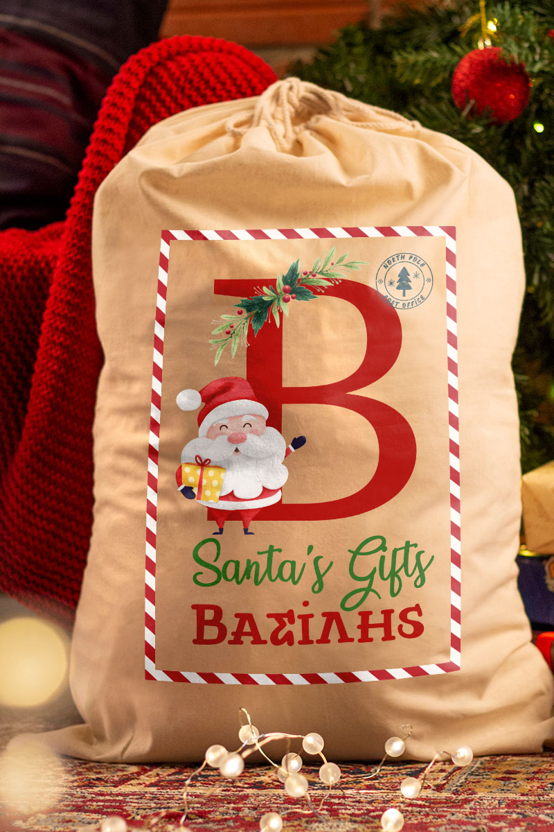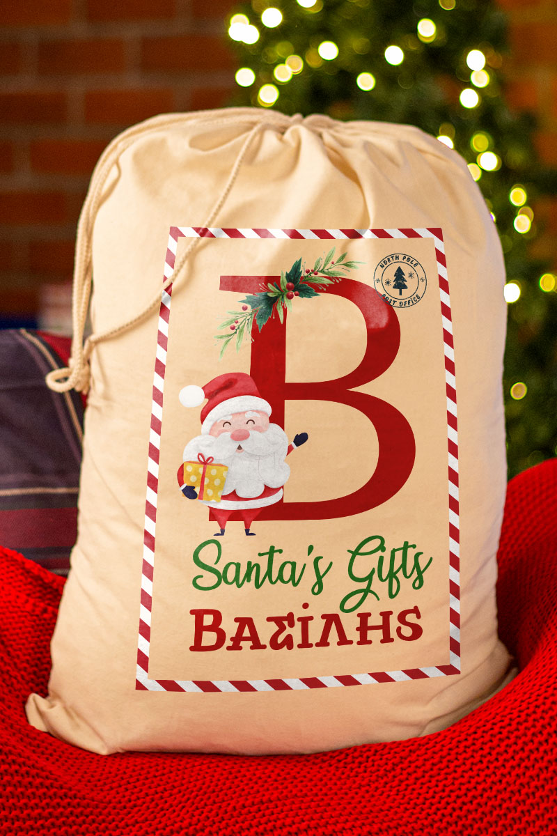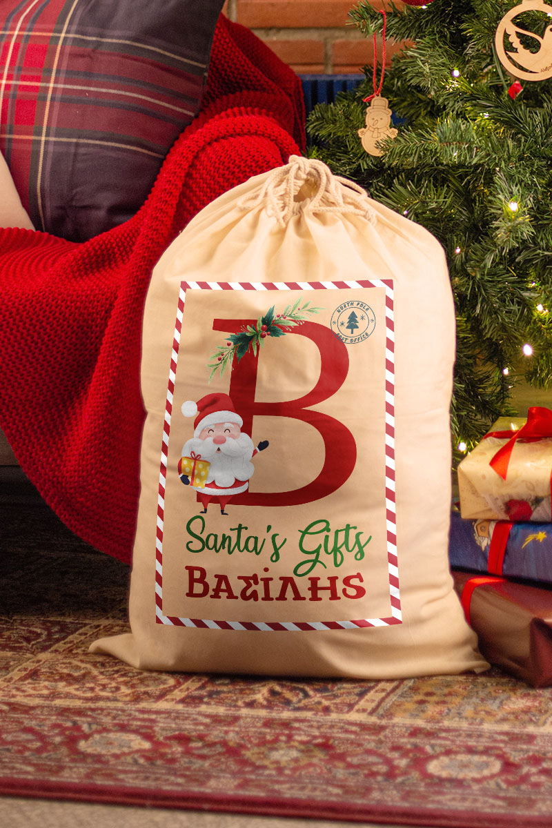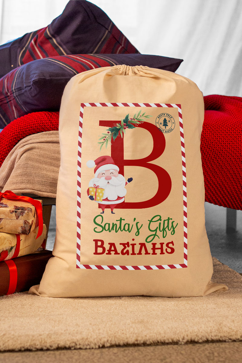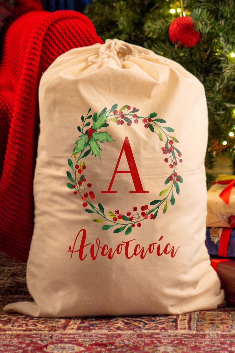 Χριστουγεννιάτικος Σάκος Δώρων Αϊ-Βασίλη με Μονόγραμμα