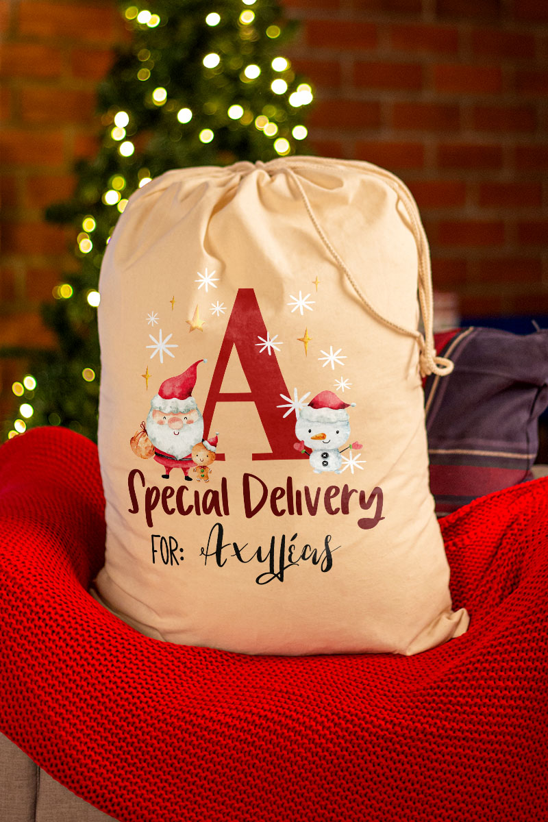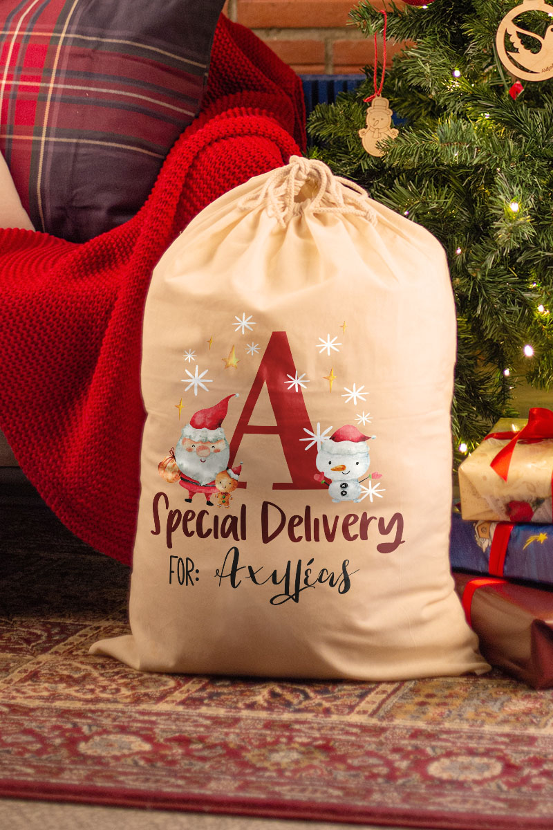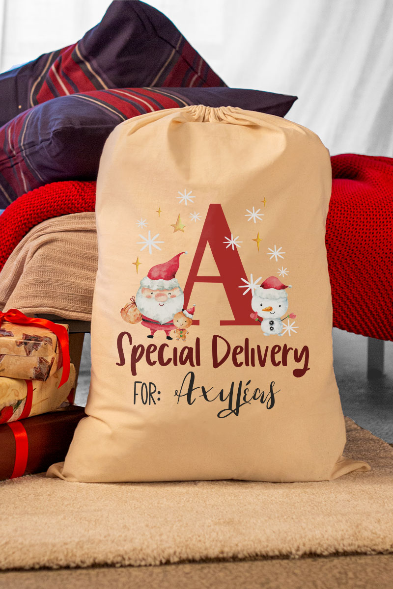 Χριστουγεννιάτικος Σάκος Δώρων Αϊ-Βασίλη με Μονόγραμμα