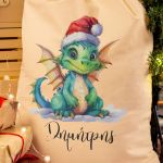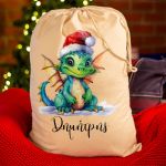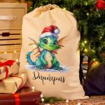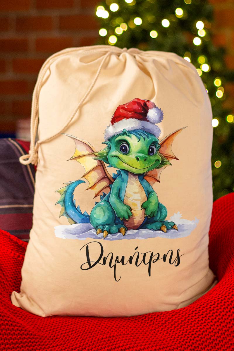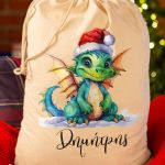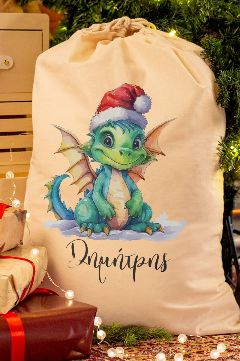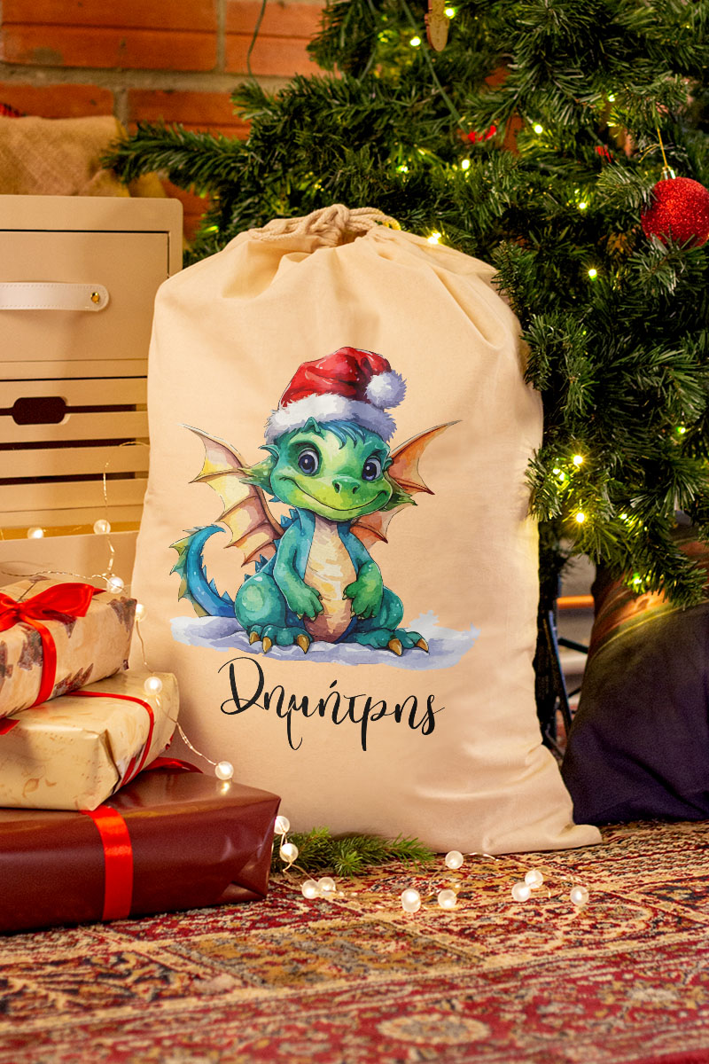 Χριστουγεννιάτικος Σάκος Δώρων Αϊ-Βασίλη με Σχέδιο Δράκο