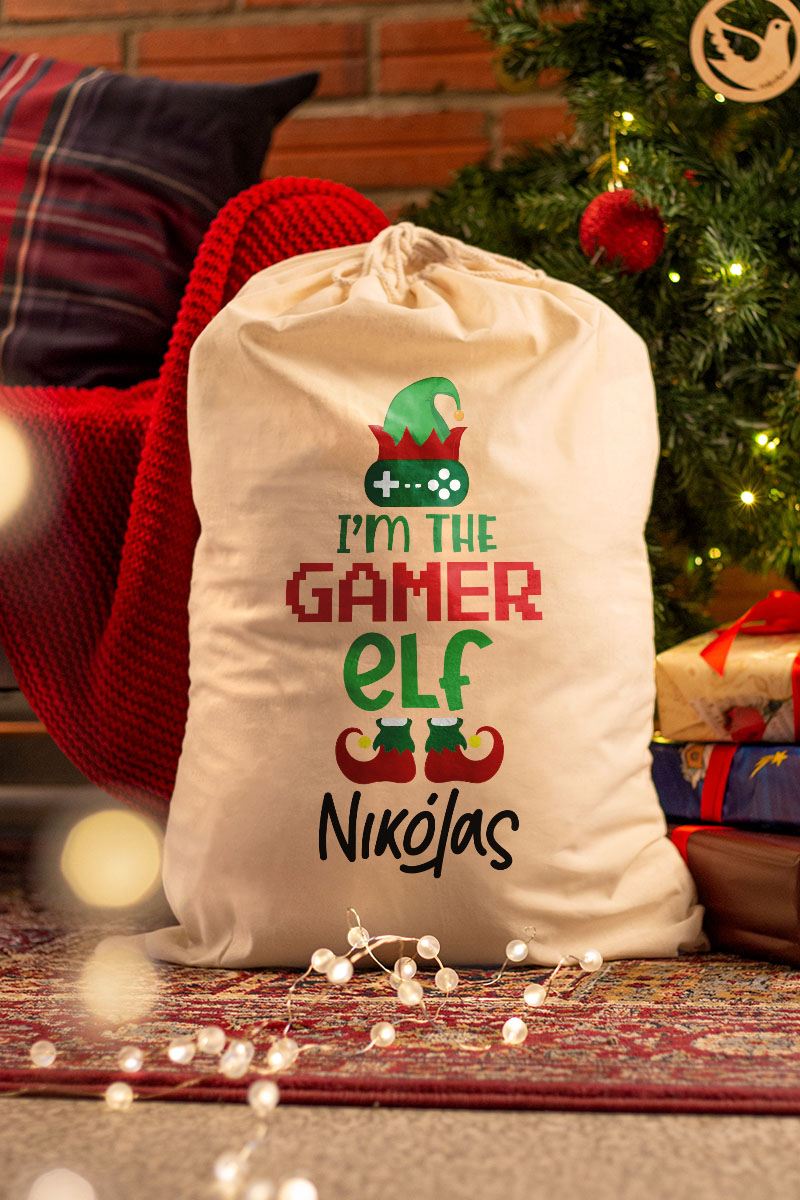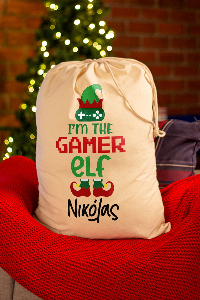 Χριστουγεννιάτικος Σάκος Δώρων Αϊ-Βασίλη με Σχέδιο Ξωτικό