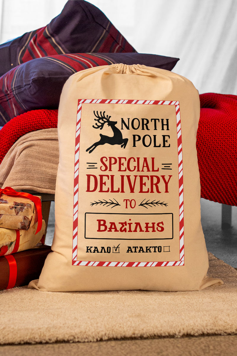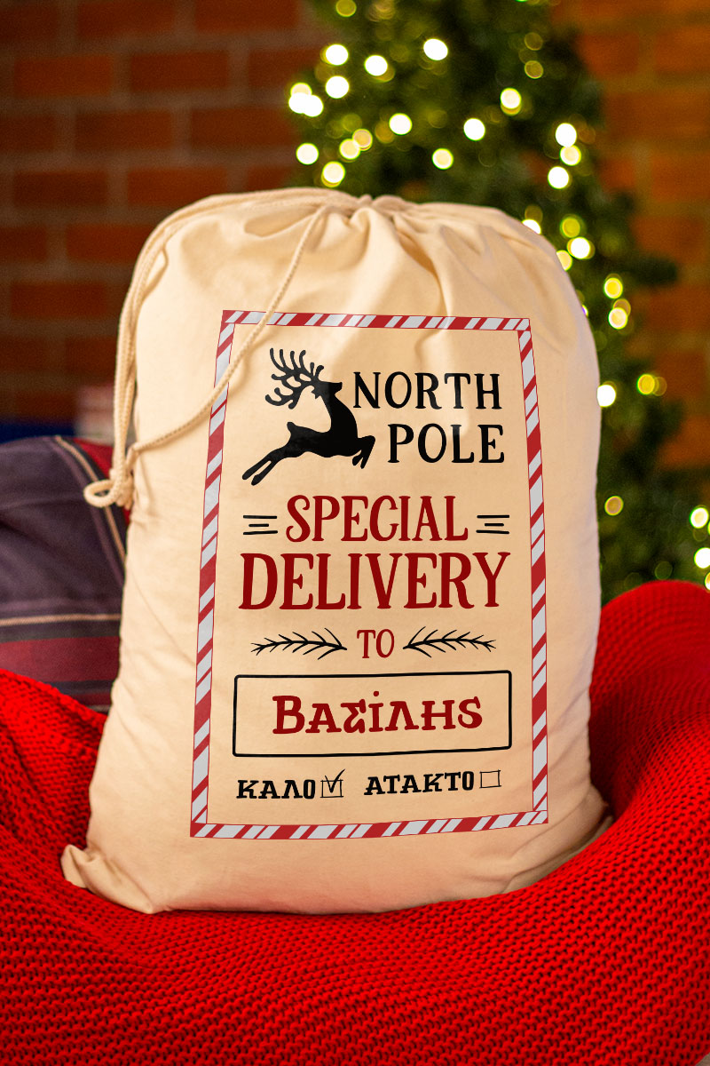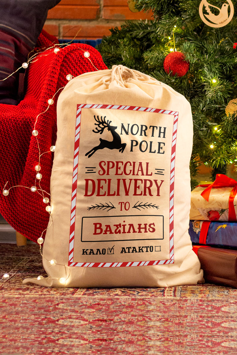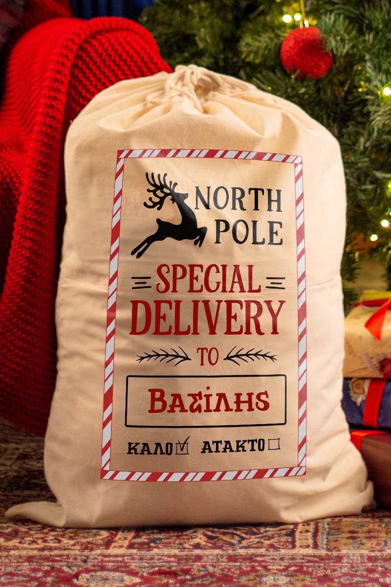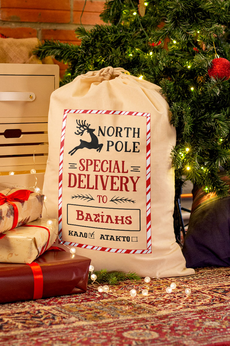 Οι προσωποποιημένοι Χριστουγεννιάτικοι σάκοι δώρων σας δίνουν τη δυνατότητα να προσθέσετε ένα προσωπικό άγγιγμα στα δώρα σας. Απλά επιλέξτε το σχέδιο που σας αρέσει, προσθέστε το όνομα του παραλήπτη και δημιουργήστε έναν σάκο δώρου που θα εντυπωσιάσει.