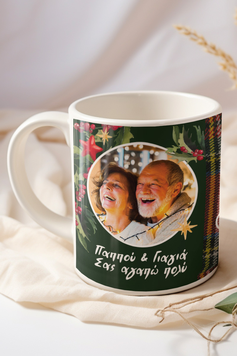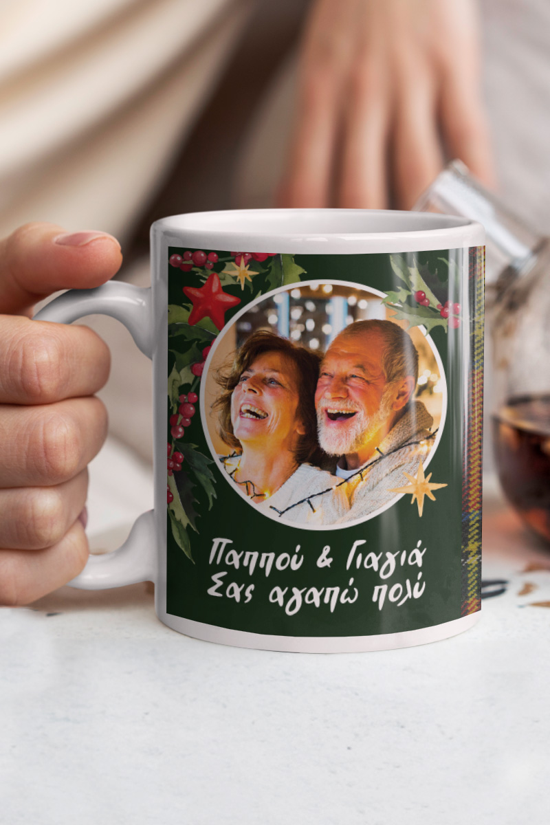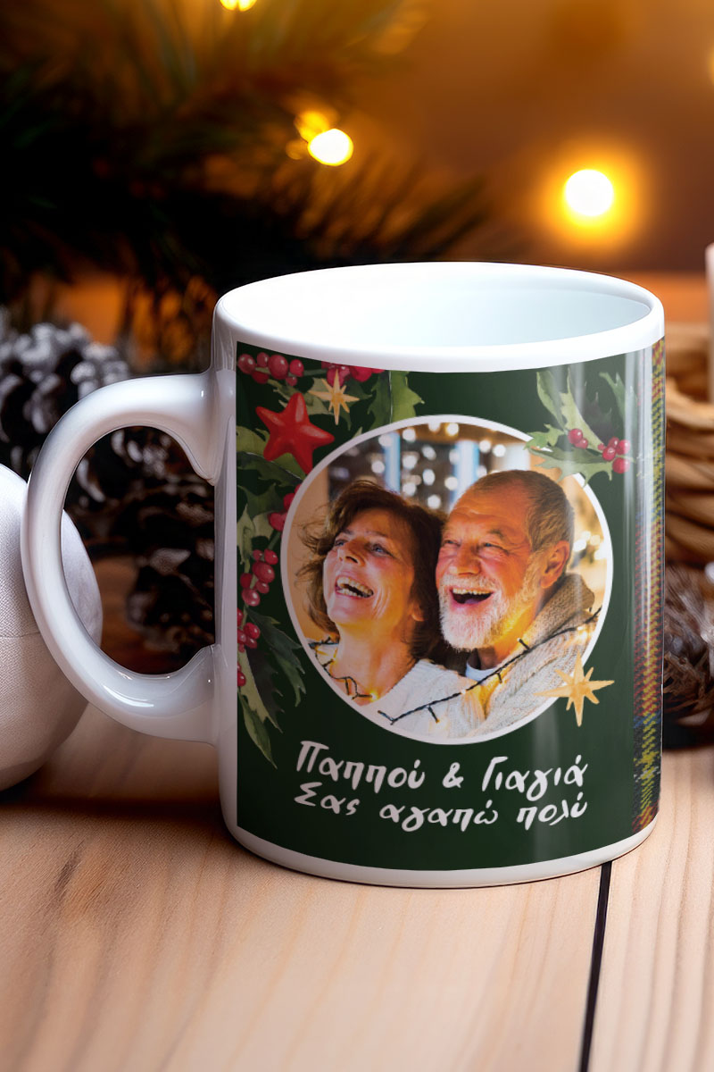 Κούπα Χριστουγεννιάτικη με Φωτό, Δώρο για Γιαγιά-Παππού